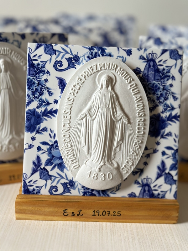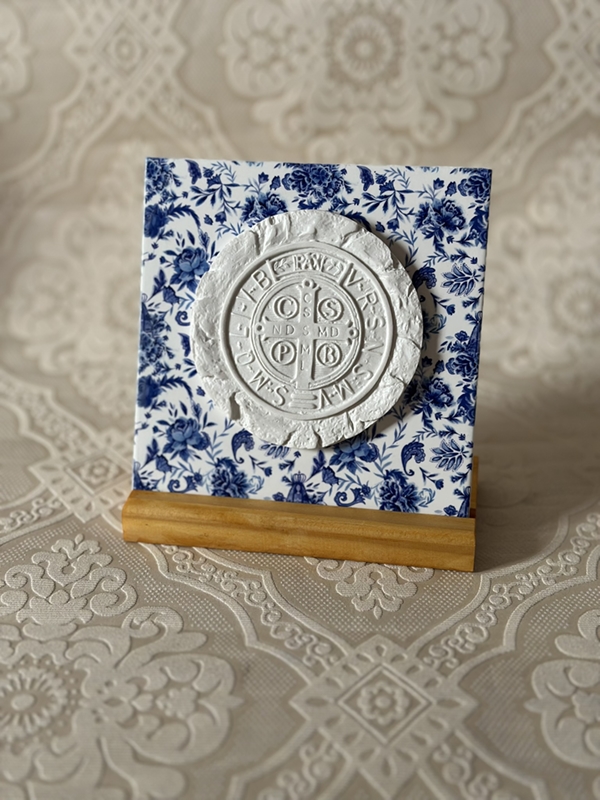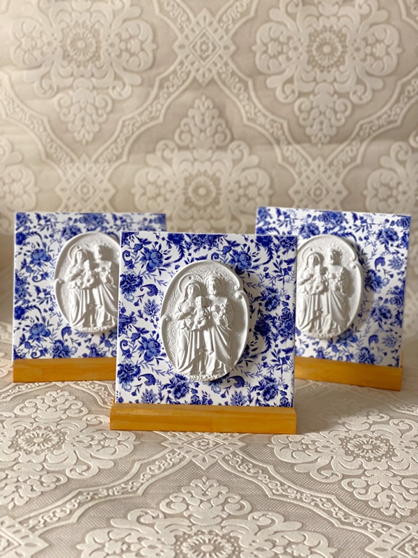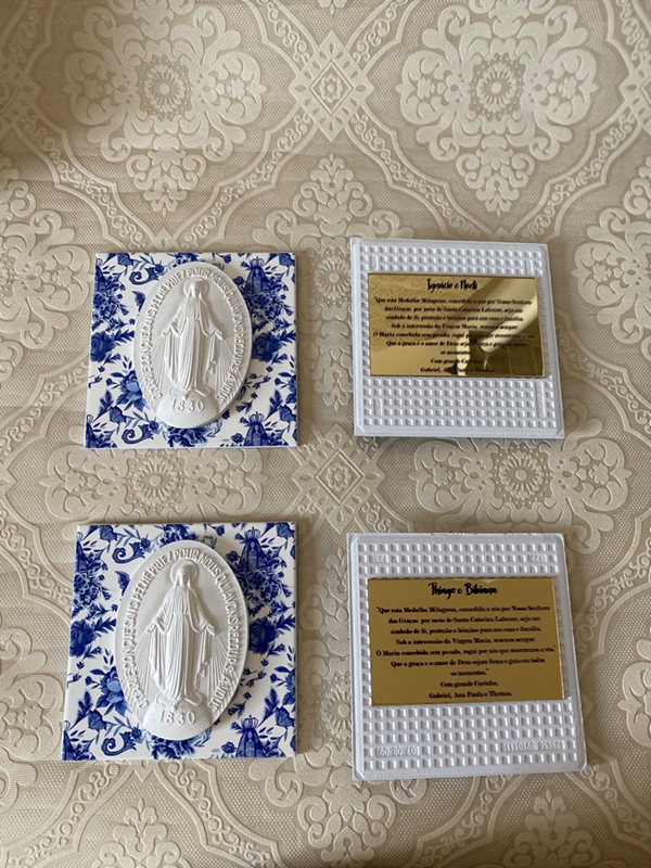 Azulejo de 15cm x 15cm com estampa floral exclusiva do Atelier Giacometti. A estampa é uma impressão digital feita no azulejo e impermeabilizada. Você pode escolher ao lado a medalha que deseja colocar no seu azulejo.