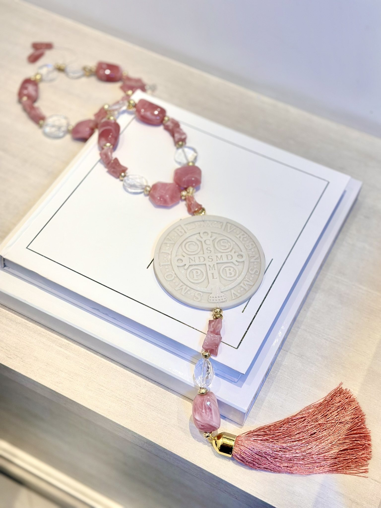 Colar de mesa G com medalha de Resina