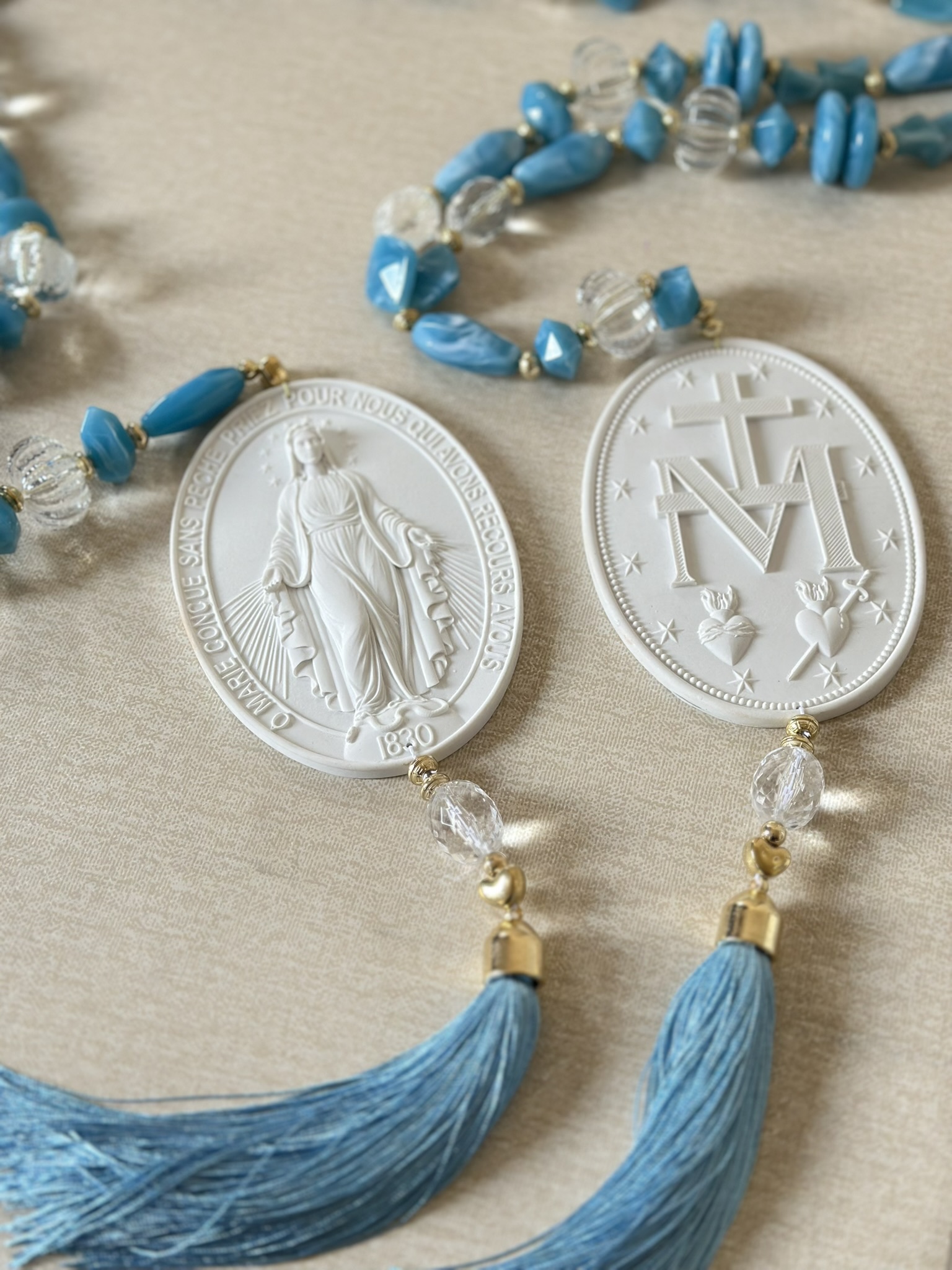 Colar de mesa tamanho GG, em torno de 1M de comprimento. Medalha modelo especial em resina de Nossa Senhora das Graças medalha frente e verso.