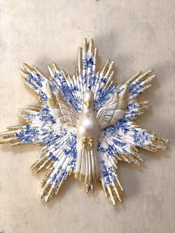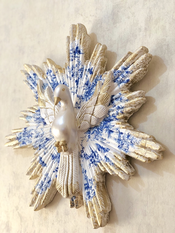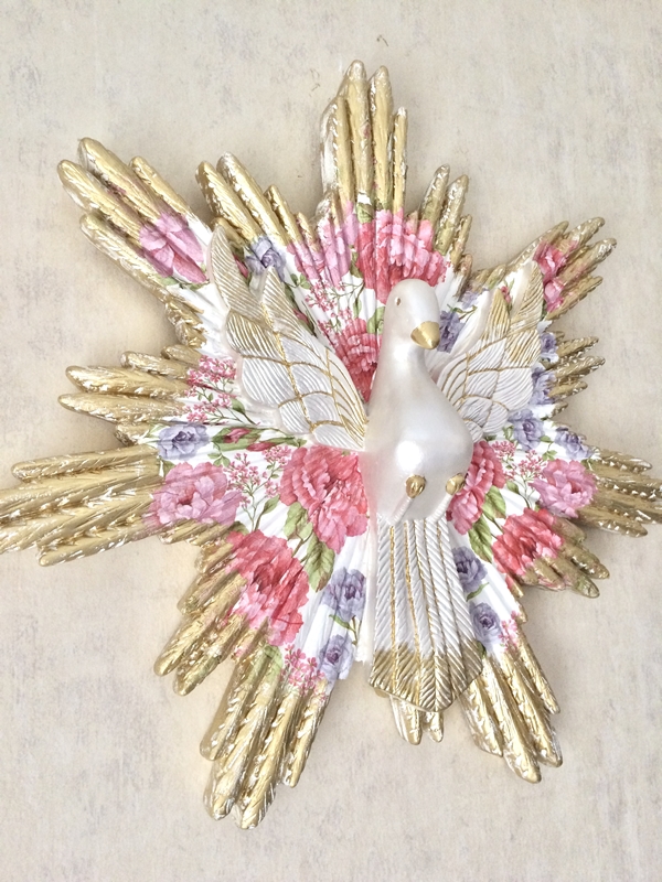 Imagem de Divino Espírito Santo com 50cm feita em pintura acrílica com Decoupage em Guardanapo com estampa. As estampas podem variar, consulte os modelos e cores de estampa chamando no botão do Whatsapp.