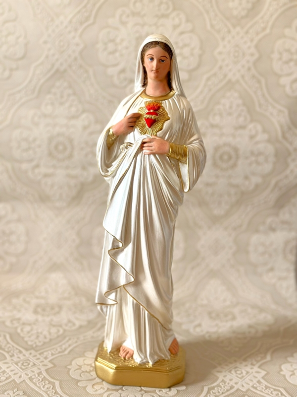 Imagem de Imaculado Coração de Maria com 40cm toda feita em pintura perolada. Todas as cores da imagem são personalizáveis de acordo com o seu gosto.