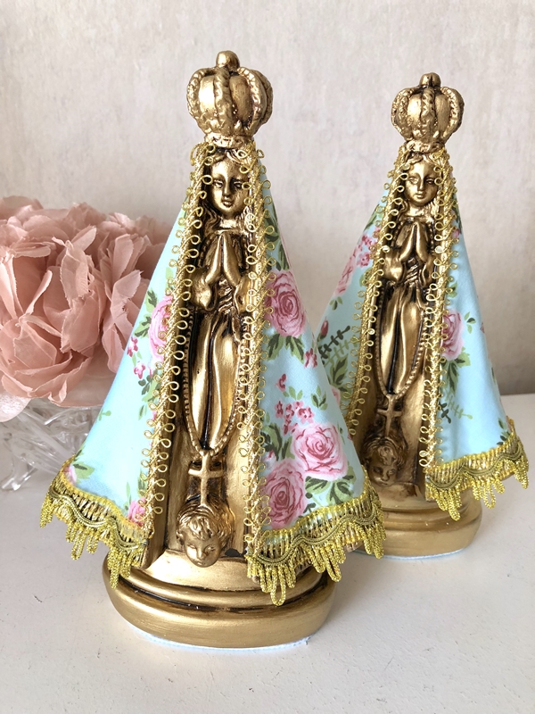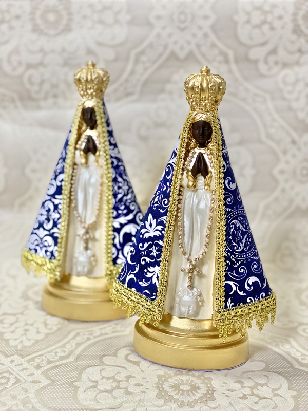 Imagem de Nossa Senhora Aparecida com 20cm feita em Decoupage em tecido 100% algodão. As estampas podem variar, consulte os modelos e cores de estampa chamando no botão do Whatsapp.