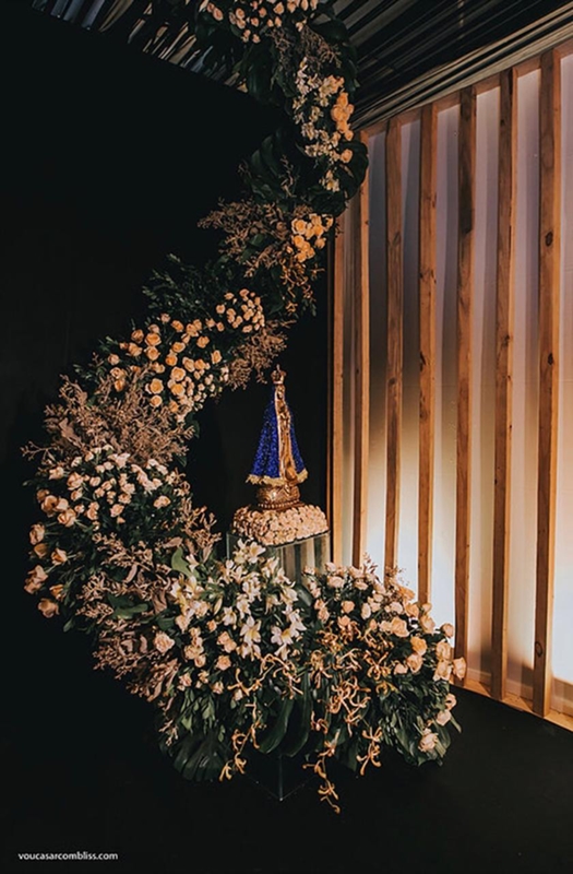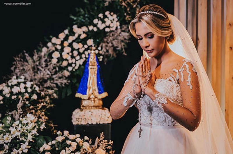 Nossa Senhora de Fátima 80cm renda bordada