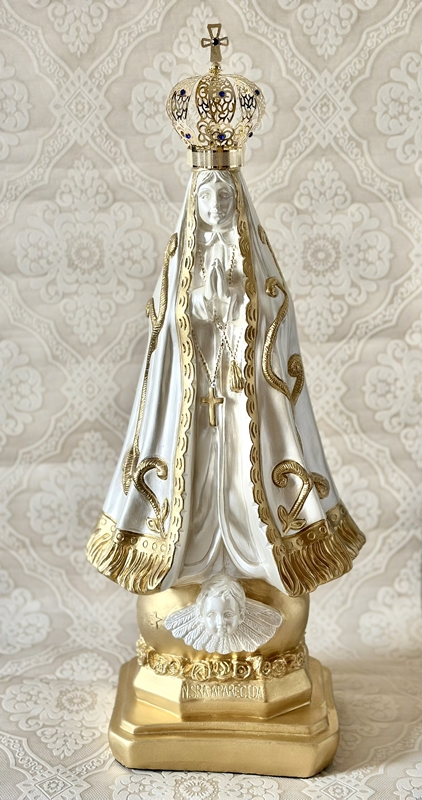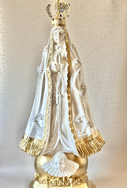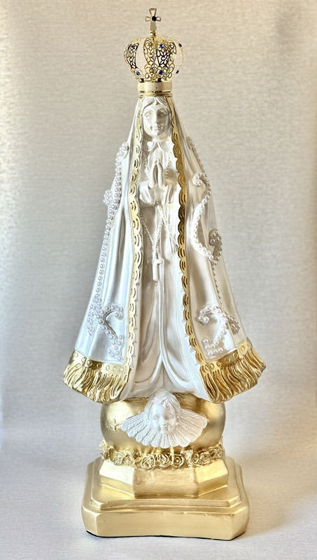 Imagem de Nossa Senhora Aparecida com 60cm toda feita em pintura acrílica perolada. Todas as cores da imagem são personalizáveis de acordo com o seu gosto. Coroa de metal.