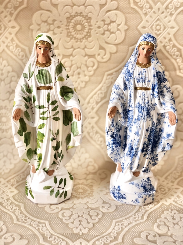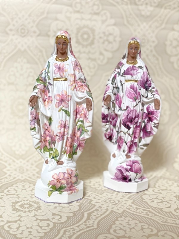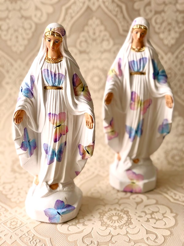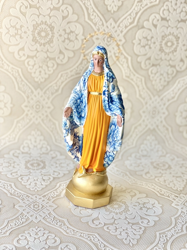 Imagem de Nossa Senhora das Graças com 25cm feita em Decoupage em Guardanapo. As estampas podem variar, consulte os modelos e cores de estampa chamando no botão do Whatsapp.