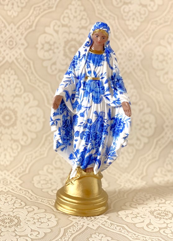 Imagem de Nossa Senhora das Graças com 30cm feita em Decoupage em Guardanapo essa estampa azul é exclusiva do nosso Atelier, foi uma estampa desenvolvida por uma aquarelista especialmente para o nosso Atelier.