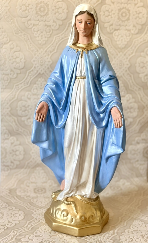Imagem de Nossa Senhora das Graças com 60cm toda feita em pintura acrílica metalizada azul clara.