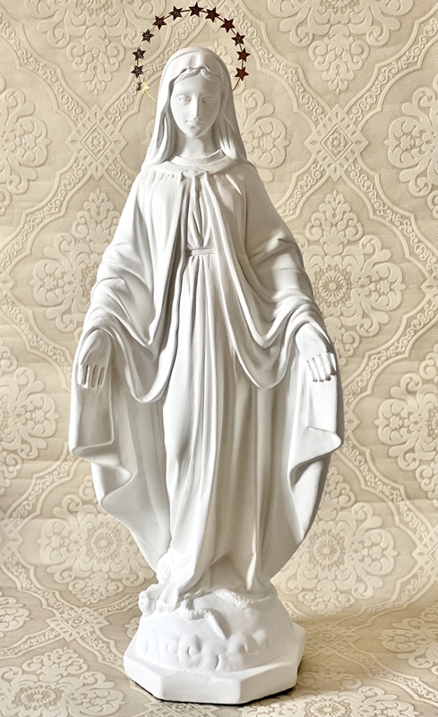 Imagem de Nossa Senhora da Conceição com 60cm toda feita em pintura acrílica branca fosca e auréola de estrelas.