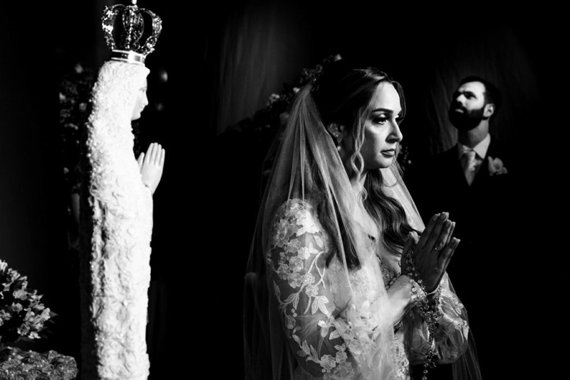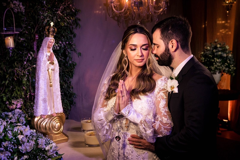 Nossa Senhora de Fátima 80cm renda bordada