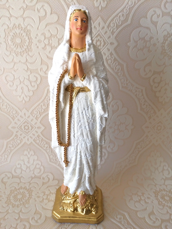 Imagem de Nossa Senhora de Lourdes com 30cm trabalhada inteira em renda sem bordados de pedraria.