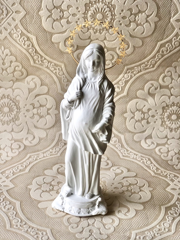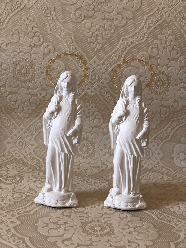 Imagem de Nossa Senhora Grávida com 20cm toda feita em pintura acrílica branca e auréola de estrela.