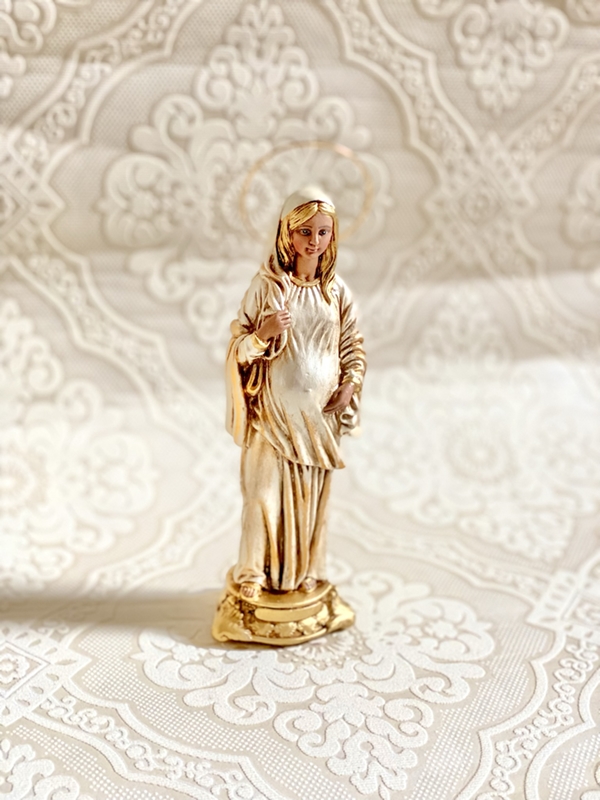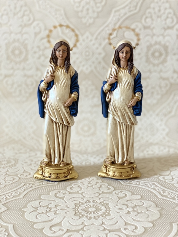 Imagem de Nossa Senhora Grávida com 20cm toda feita em pintura acrílica perolada envelhecida e auréola. Você pode escolher as cores da sua imagem.