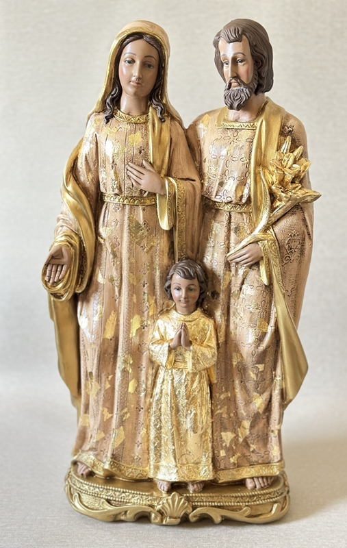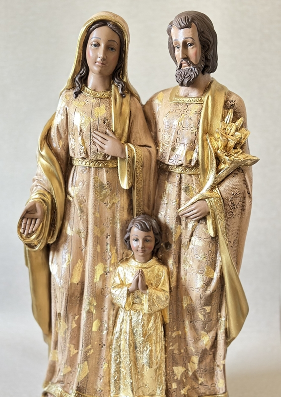 Sagrada Família em pé 60cm envelhecida e folha de ouro