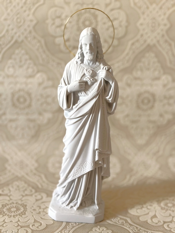Imagem de Sagrado Coração de Jesus de 30cm em Pó de Mármore branca com auréola de metal com banho de ouro.