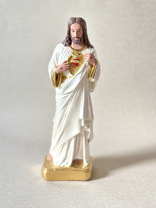 Imagem de Sagrado Coração de Jesus com 30cm todo feito em pintura acrílica perolada. Todas as cores da imagem são personalizáveis de acordo com o seu gosto.