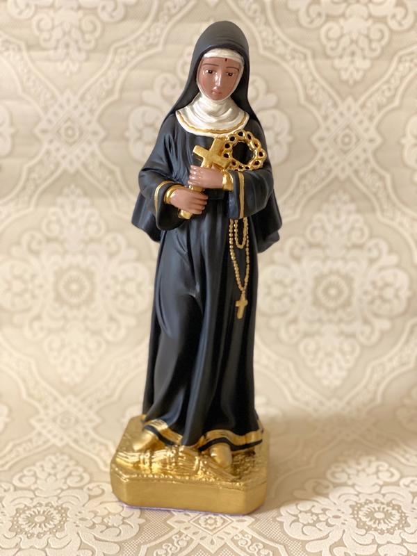Imagem de Santa Rita de Cássia com 40cm toda feita em pintura acrílica nas cores clássicas. Todas as cores da imagem são personalizáveis de acordo com o seu gosto.