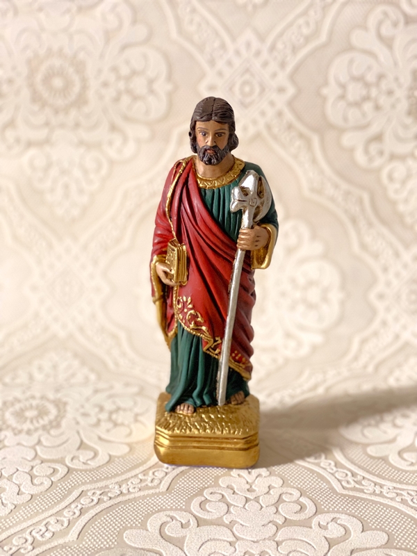 Imagem de São Judas Tadeu com 20cm e 30cm toda feita em pintura acrílica envelhecida. Todas as cores da imagem são personalizáveis de acordo com o seu gosto.