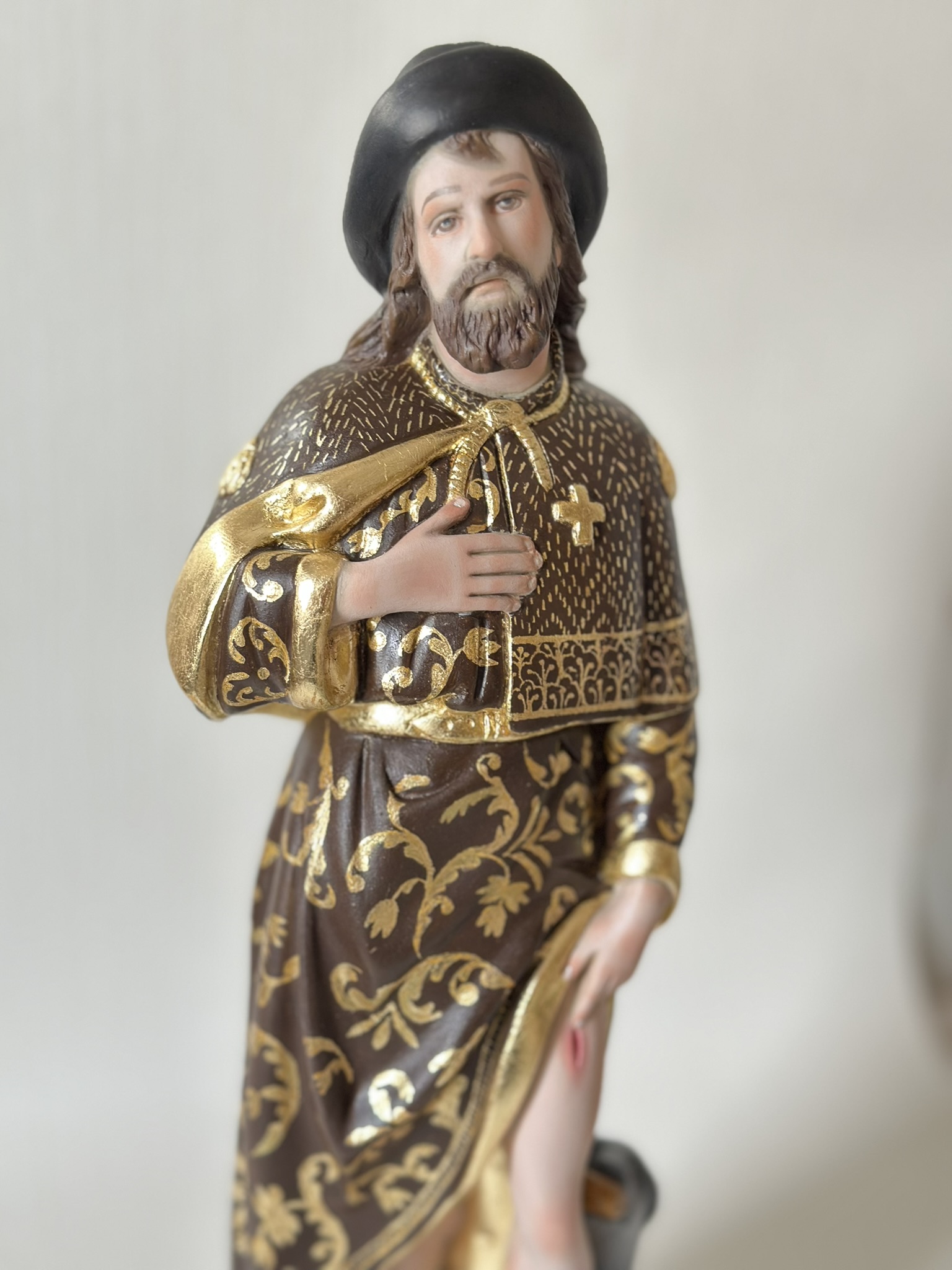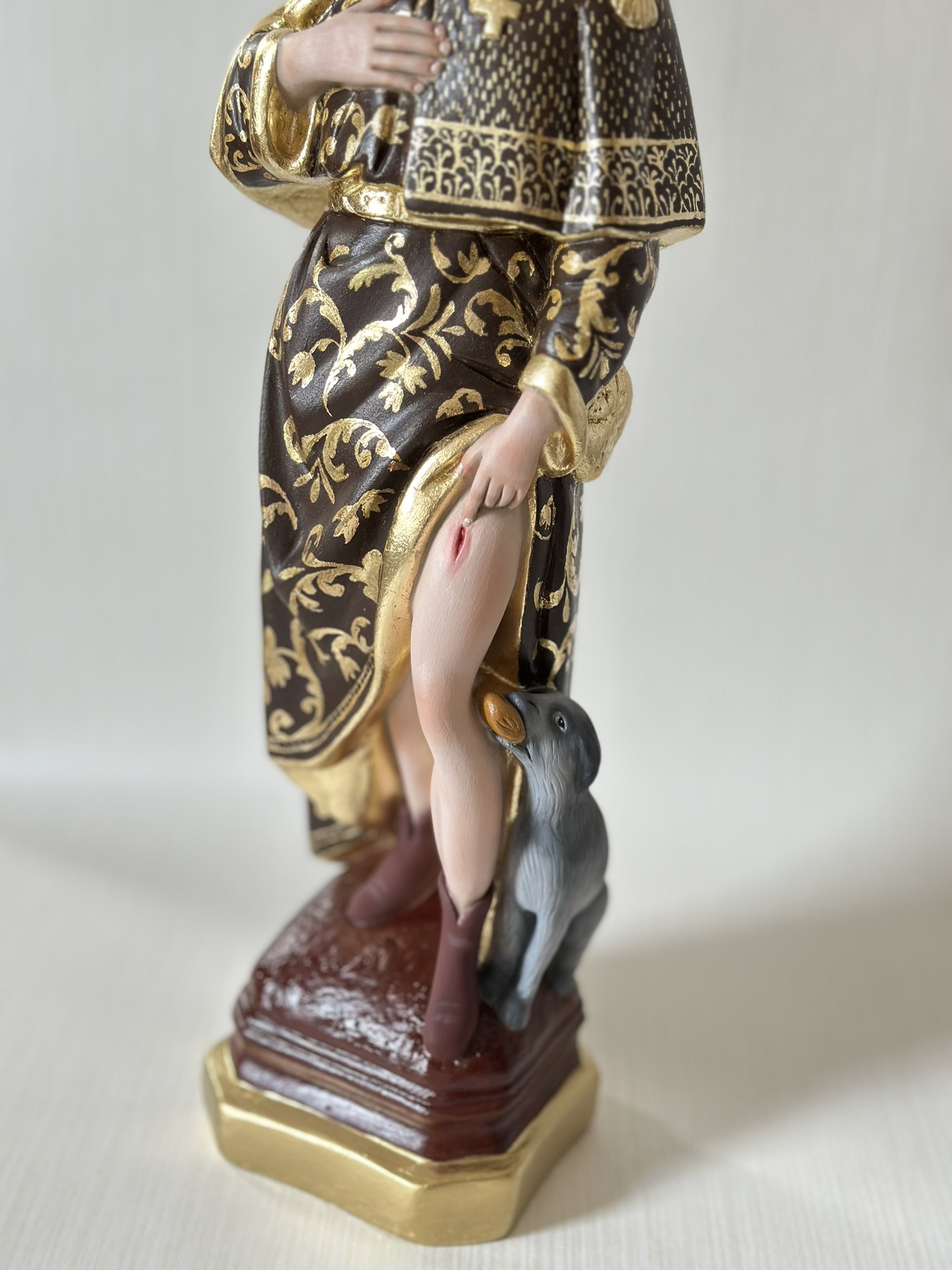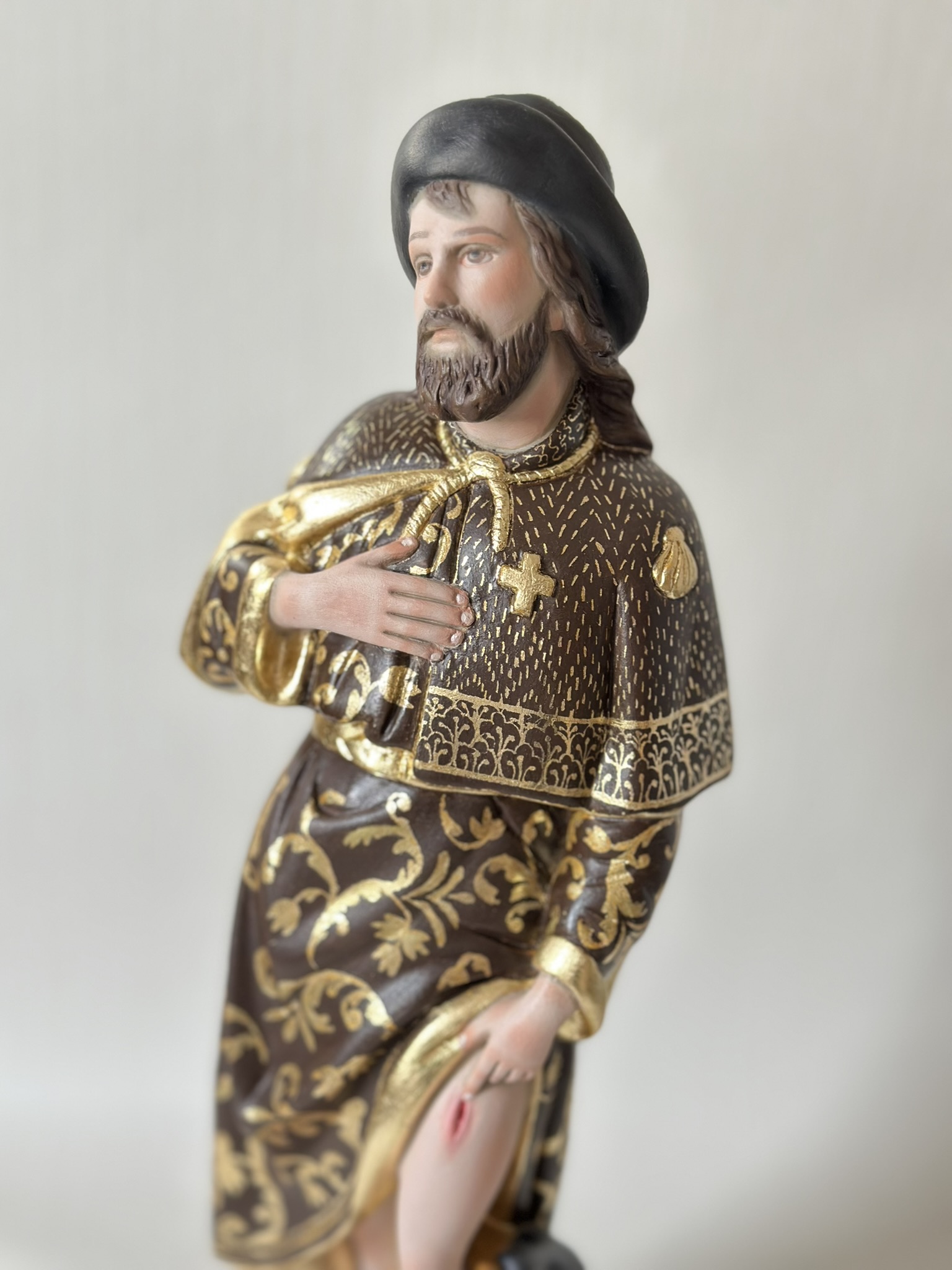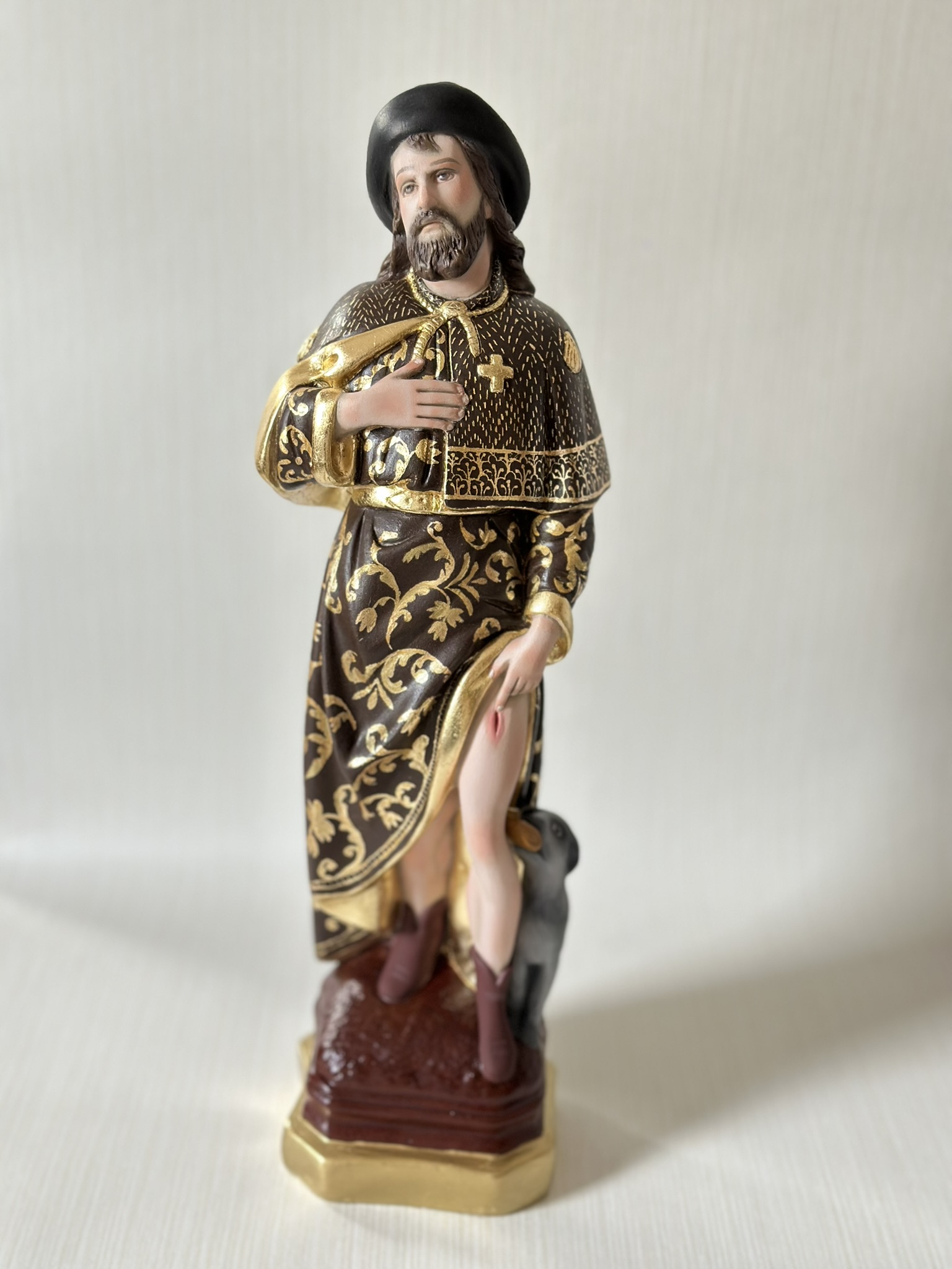 São Roque 40cm Policromia com Sgraffito em folha de ouro